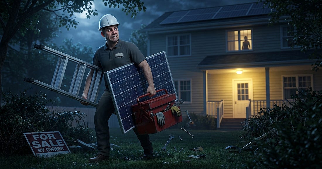 Roughly half a million American homeowners are making payments right now to solar companies that have either gone bankrupt, been quietly shut down, or slipped out the back door and handed your contract to somebody you've never heard of.